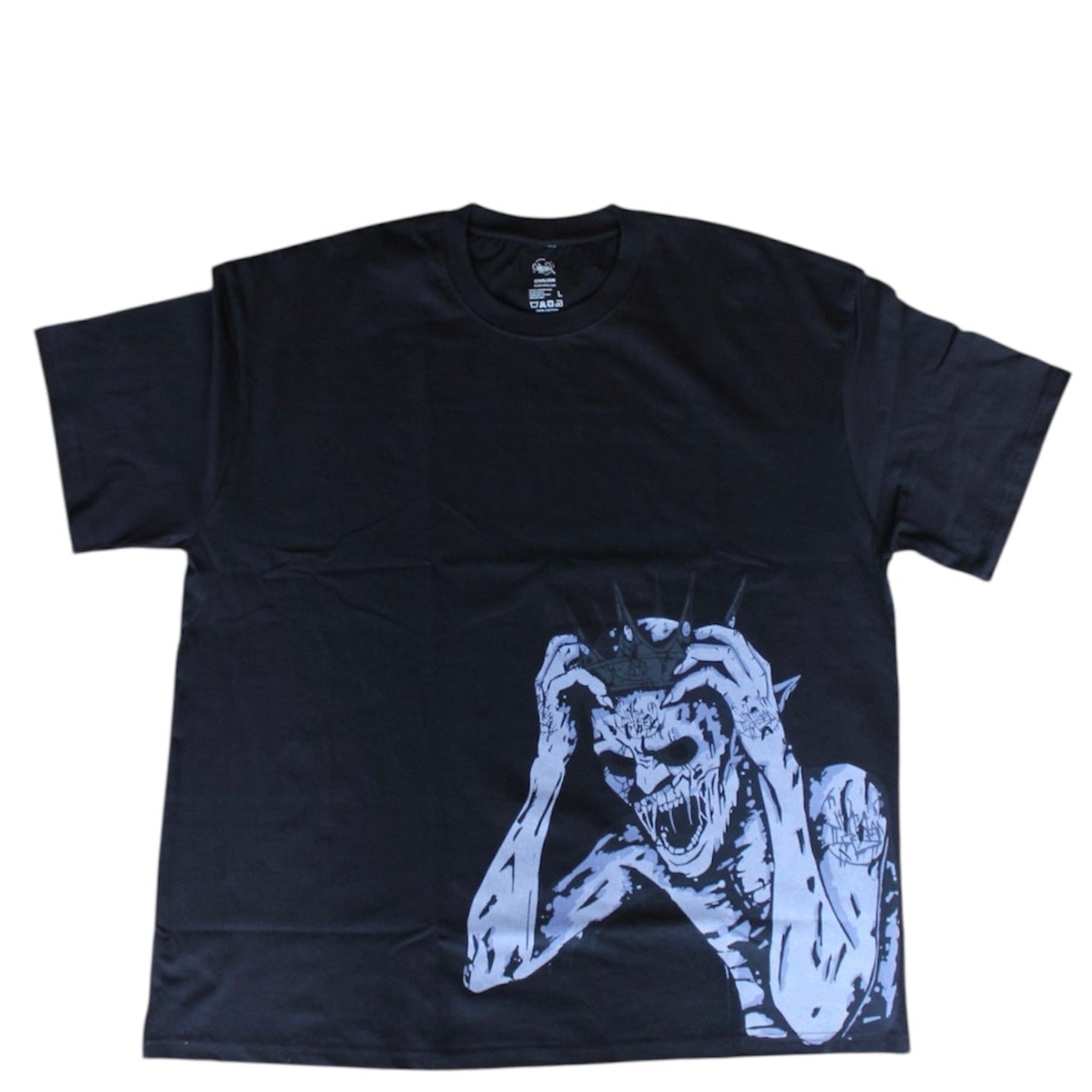 (Recommended For a more True Oversized Fit Order Up a Size) This Will also Avoid any Problems If you just so happen to mis-Wash Or Over-dry The T Shirt. Demon Time Features A Large Front print of Our Inner Civilian demons with a classic large civilian font print on back bottom