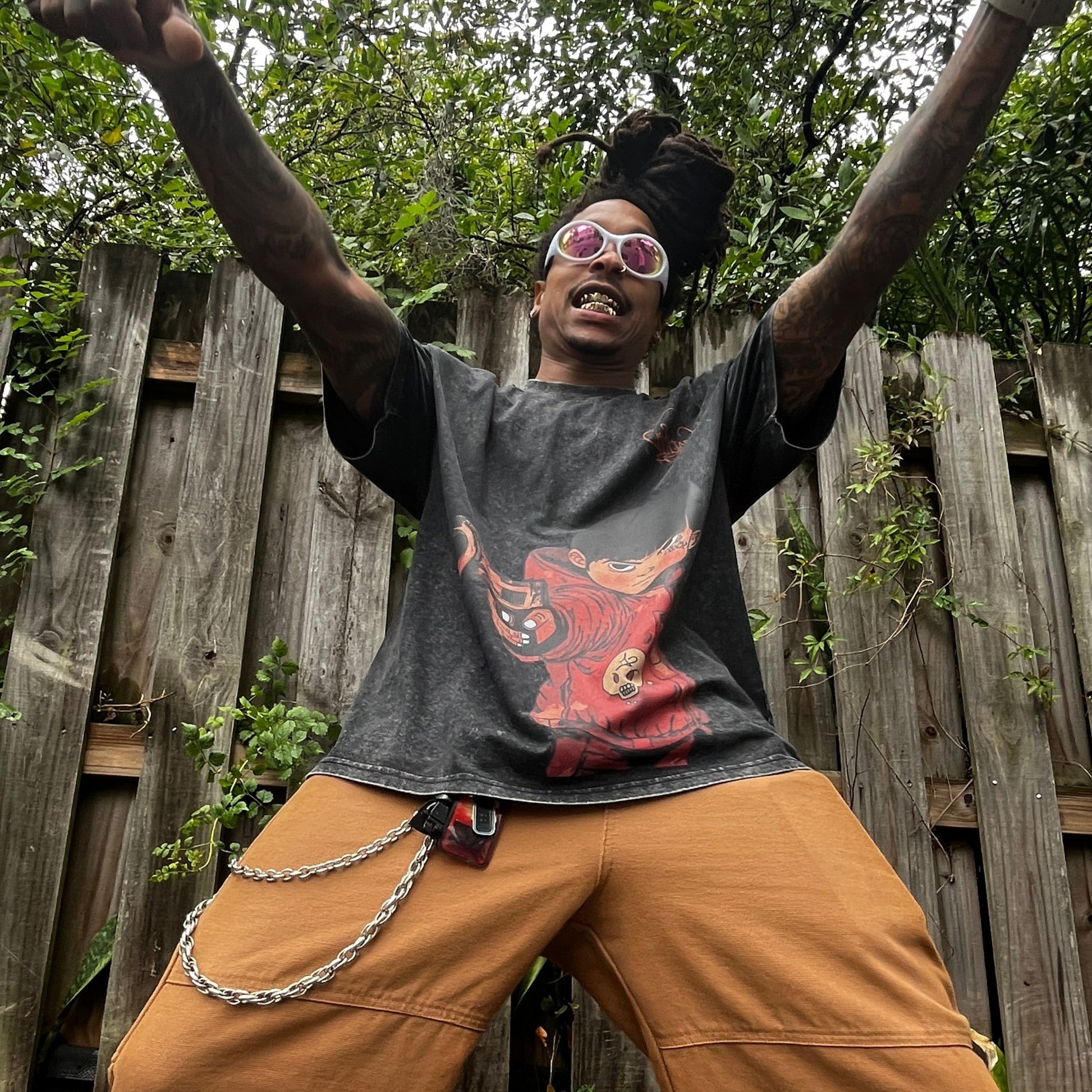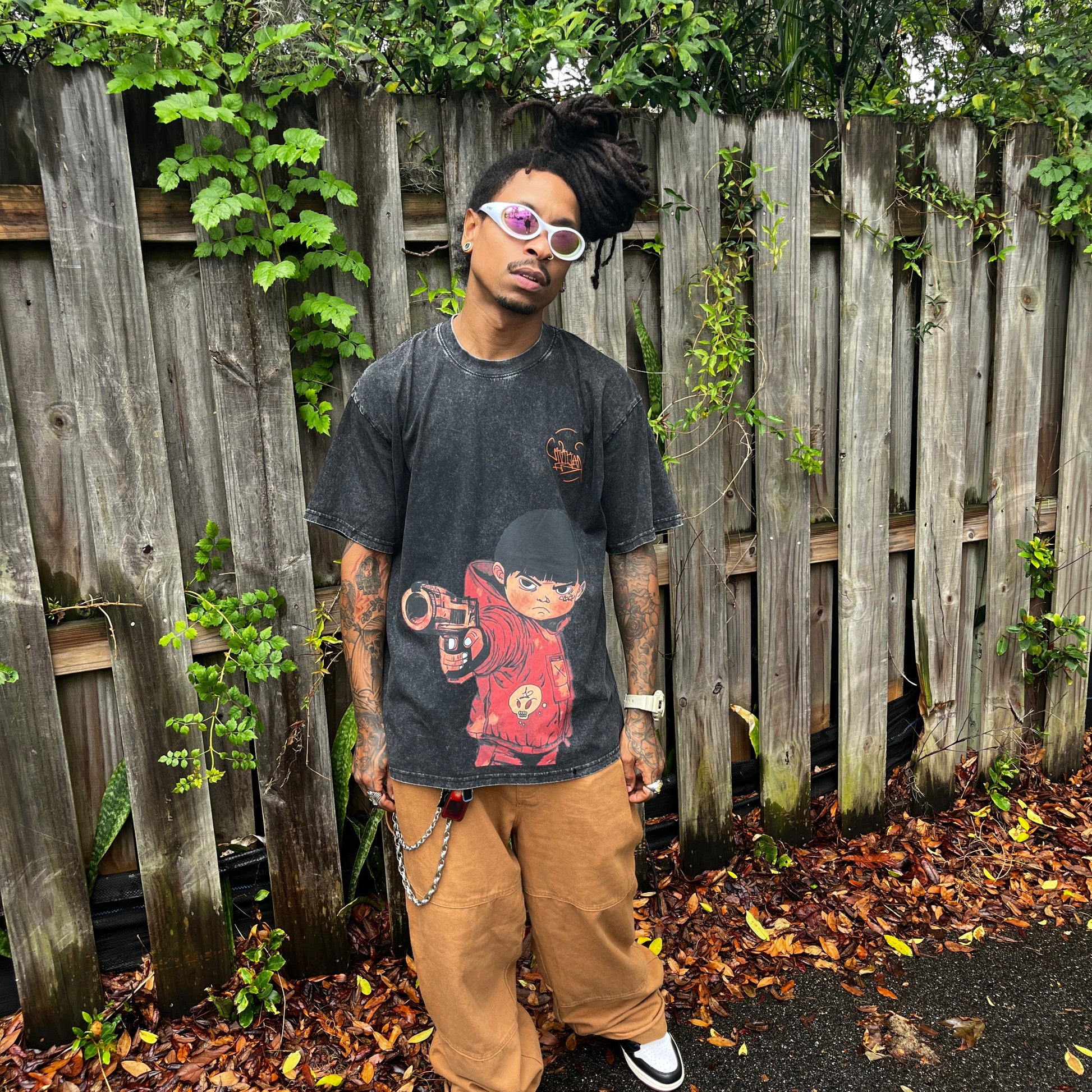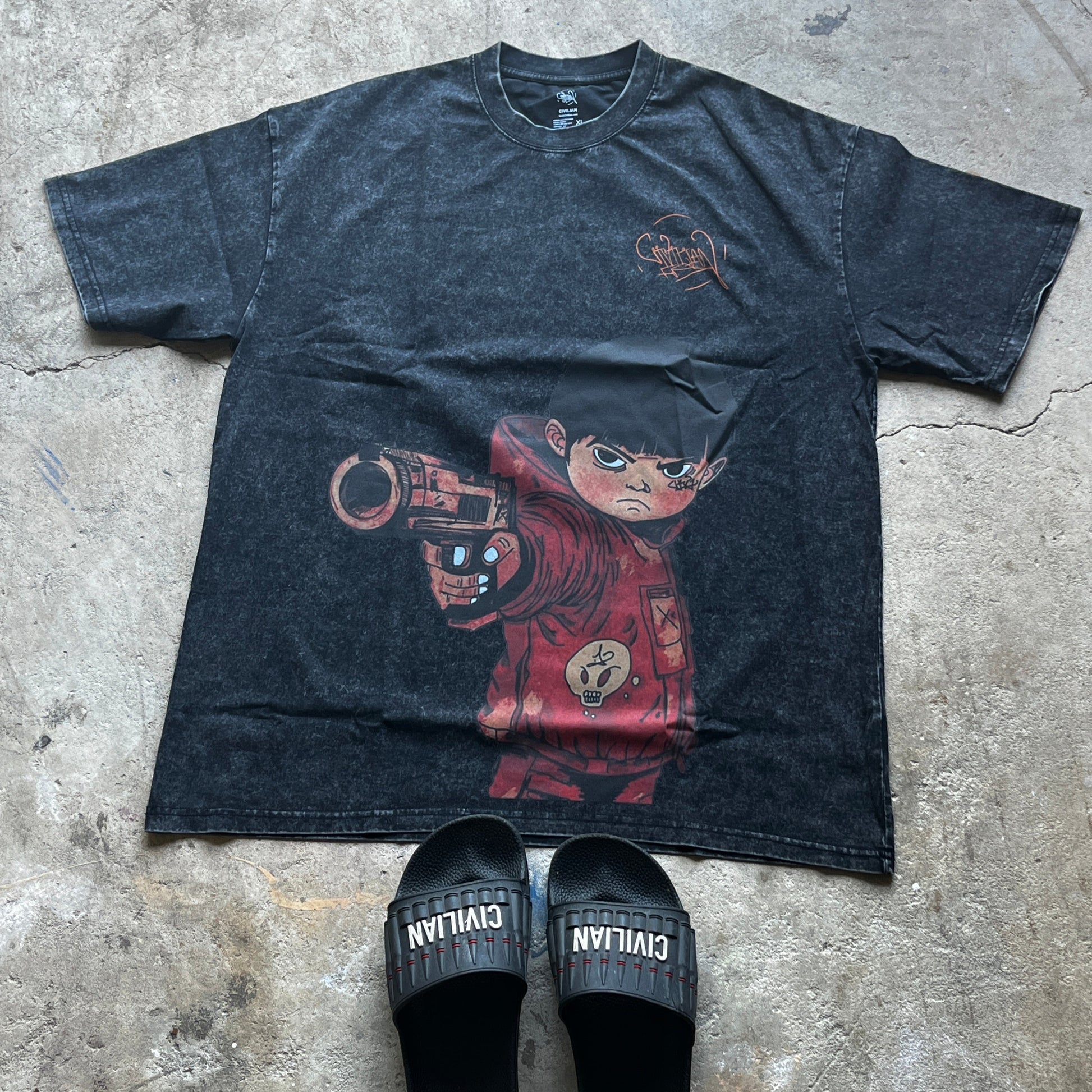 Dystopian Child Features A Large Front print with logo shoulder hit. on a oversized Acid washed T-Shirt. Thick crewneck neckline. Heavy Duty Shirt (280 gsm) Drop Shoulder.